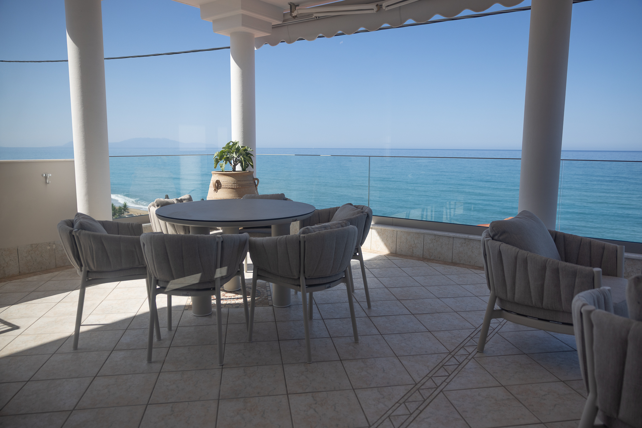 Τα κομψά δωμάτια προσφέρουν θέα στη θάλασσα.